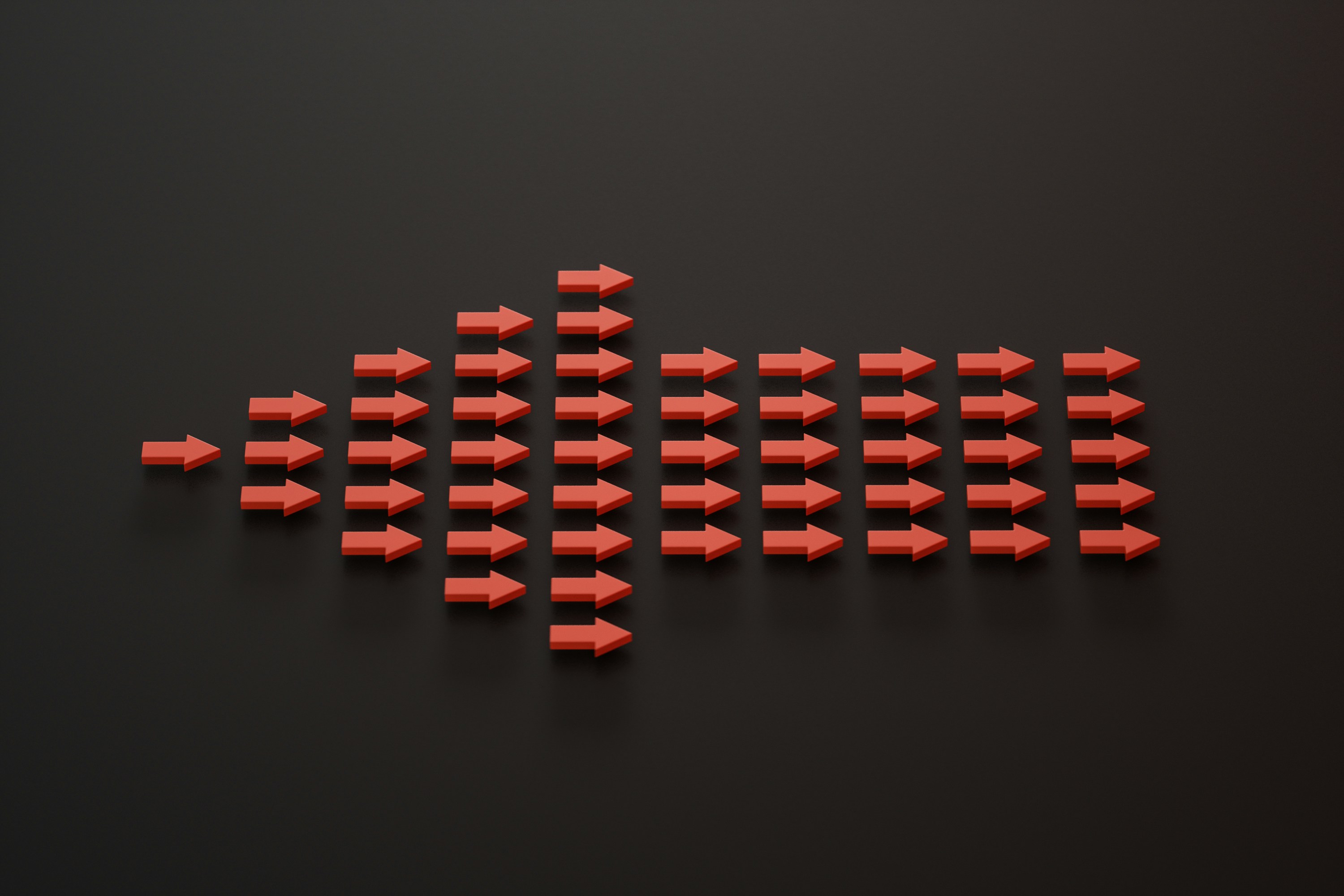 a group of red arrows on a black surface