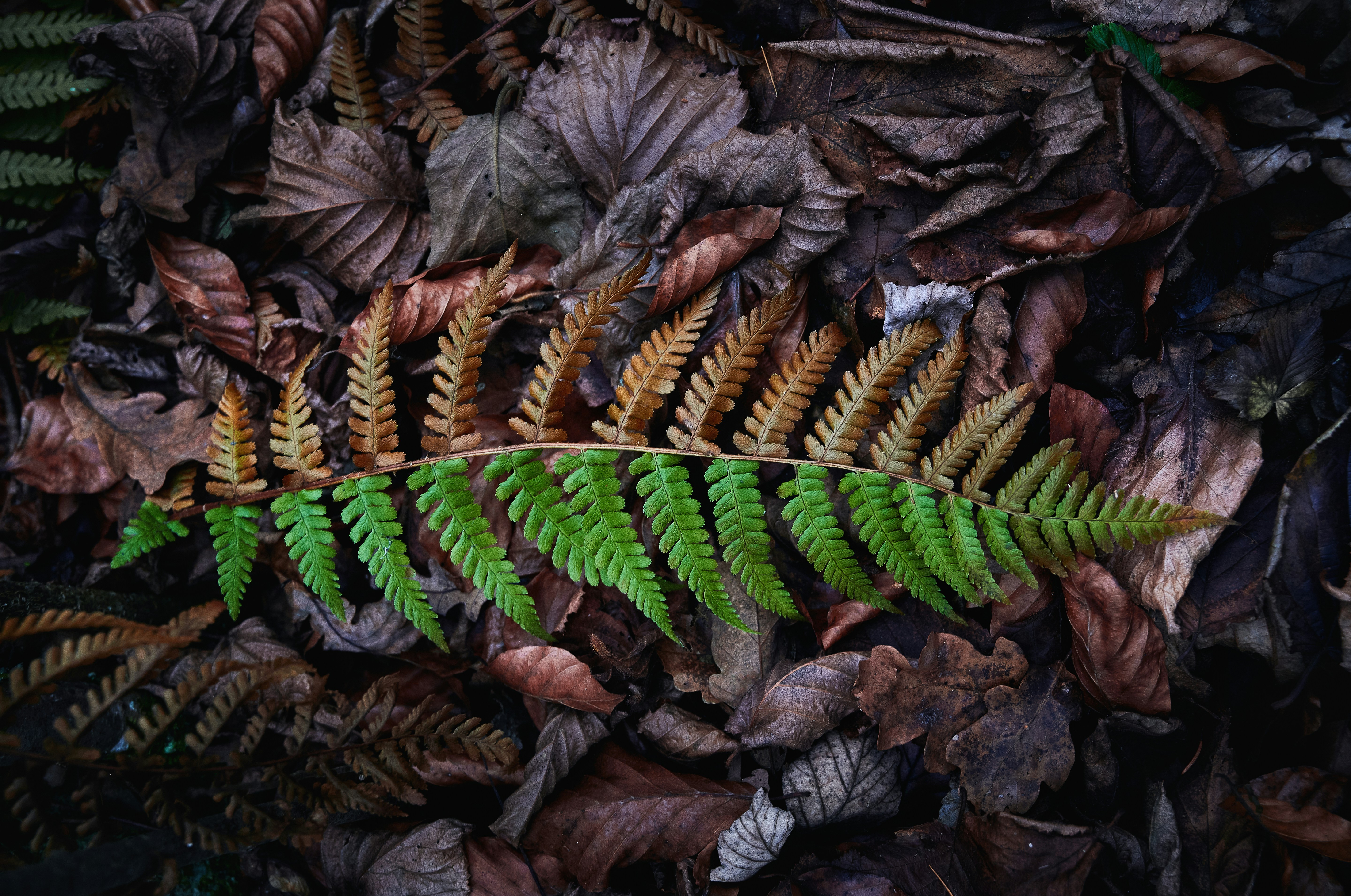 Boston fern on dried leaves